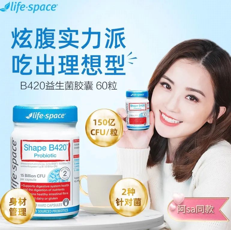 Life Space,澳洲益生菌品牌NO.1!刘涛、吉克隽逸自用的款益生菌品牌!正确开启无压力瘦身!每一粒B420塑身益生菌,含150亿个CFU益生菌株,专门打倒体内的易胖菌,可以有效抑制脂肪的吸收,让身体少吸收事物中的热量。帮助你养成瘦更健康的肠道消化系统!