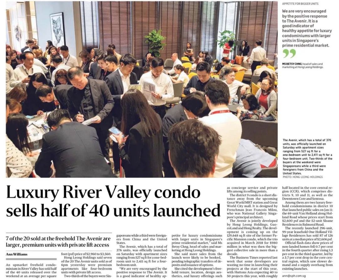 The Avenir提供一卧到四卧的家庭房(带私人电梯)供买家选择,房型面积从49平方米-224平方米。