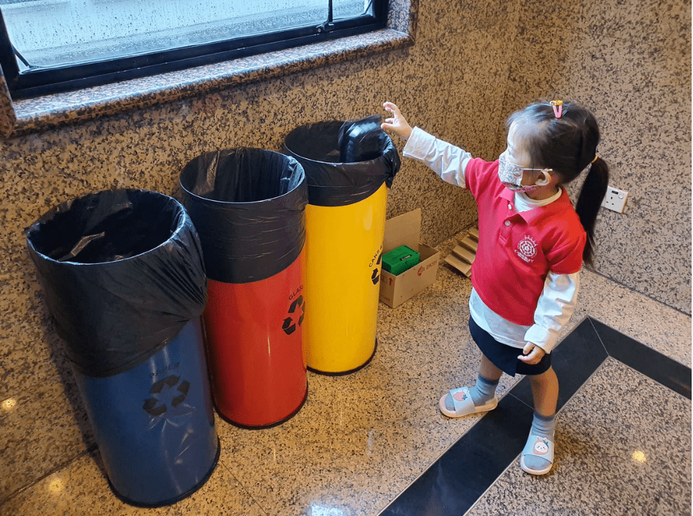 在Camberley幼儿园,人人都是环保先锋。园区内,孩子们小小年纪就要接触垃圾分类,慢慢培养他们的环保意识。