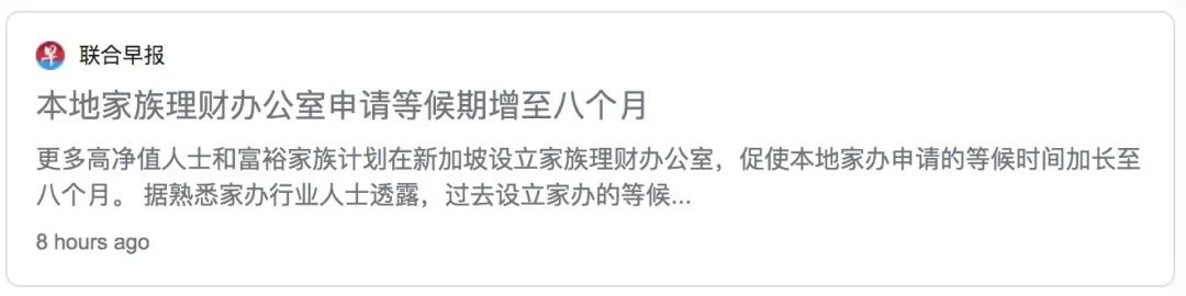 以往设立家办需等候约4个月,如今申请人数太多,这个等候时间已经增加到8个月!