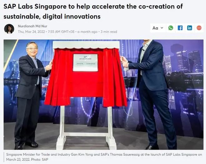 另外,在3月24日思爱普公司(SAP)宣布在新加坡推出它在东南亚的首个数码创新中心,投资2.5亿新币!