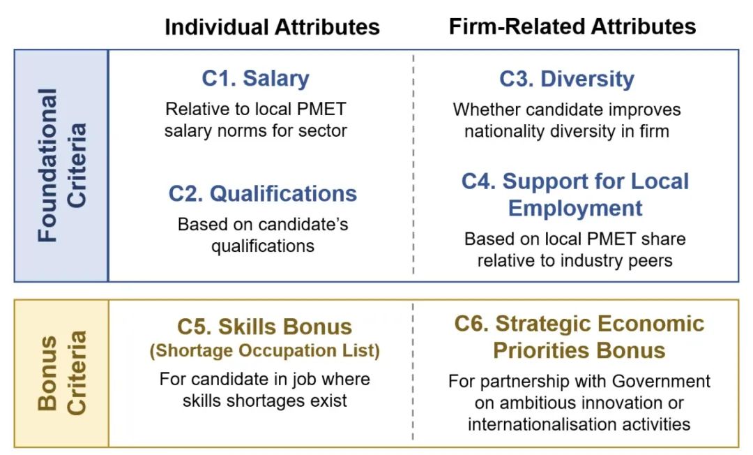 这个框架主要用来评估准证申请人的能力,是不是符合本地劳动市场的需求,以此来判断是否批准准证申请。