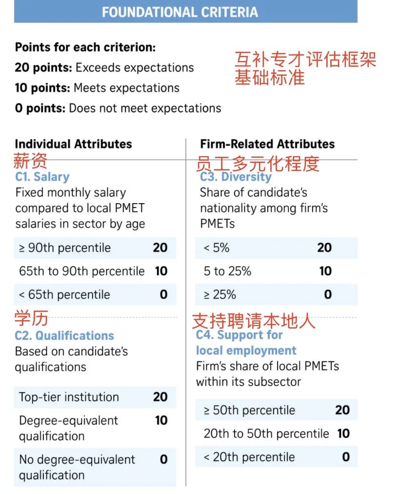 跟同龄同行相比,申请人除了月薪高或者学历高,剩下两个标准:要么属于新加坡外籍员工中的稀缺国籍,要么属于聘用本地人较多的公司。