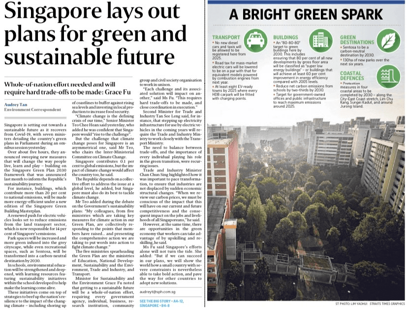 不仅如此,在去年3月的国会中,政府还公布了一份《新加坡2030年绿色发展蓝图》,想要实现可持续性发展和环保。