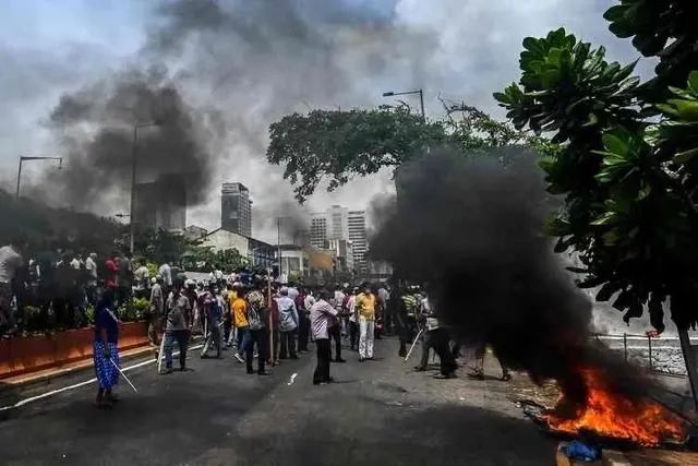 在首都克伦坡的住宅也被示威者包围,有抗议者直接在那里纵火。