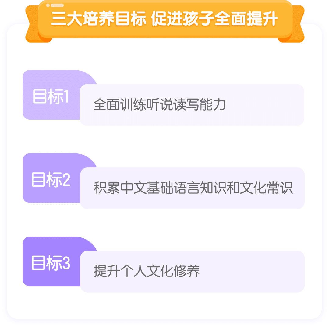 ▶有一定语言基础的孩子经过语言测评,可以选择G1-G6相应等级核心课开始学习,培养语言学习兴趣、提升综合文化,拓展文化常识,全面提升人文素养。