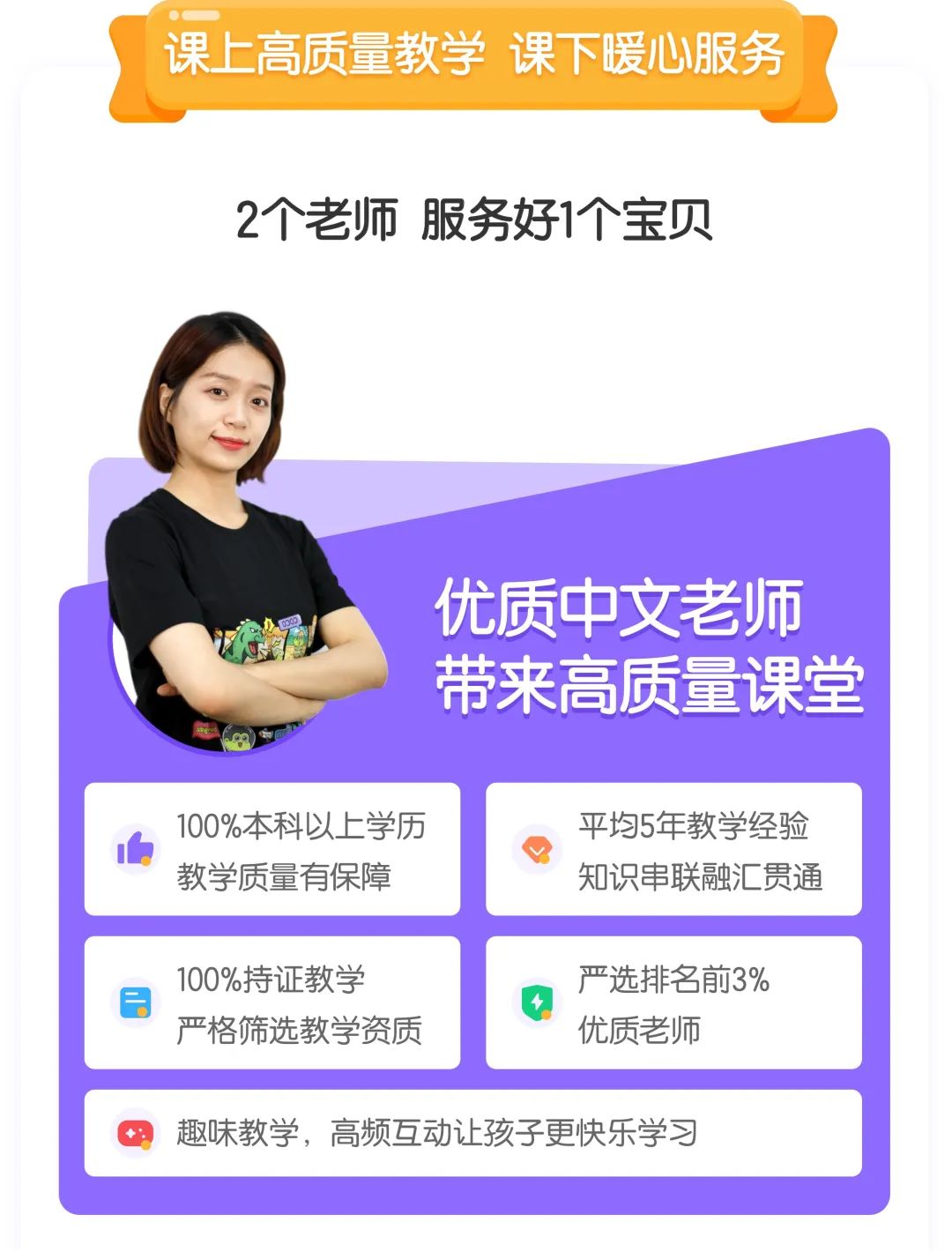 我们提供最完备的服务,一对一答疑辅导,让学习过程清晰可见。班主任全程陪伴孩子学习,疑难问题随时问、随时答,趣味互动全程跟,有回访,有总结,有温度,有耐心,让孩子乐此不疲,让家长满意放心!