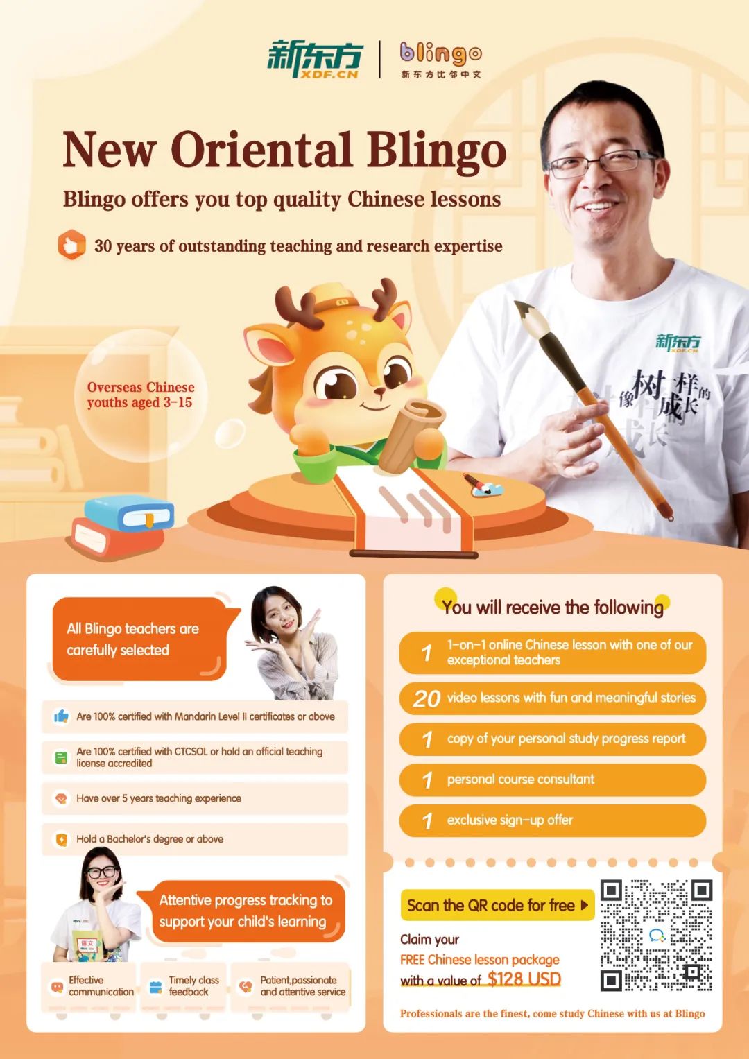 Blingo从新东方走来,基于新东方近30年的雄厚经验研发,更了解孩子在不同成长阶段所面临的学习难点。课程研发依托新东方少儿、小学语文产品,内容对标部编版《语文》教材,参考最新发布的《国际中文教育中文水平等级标准》,教学目标清晰,课程体系完整,并且运用最强大的师资力量来保证这里的每一堂课都是优质的华文课。