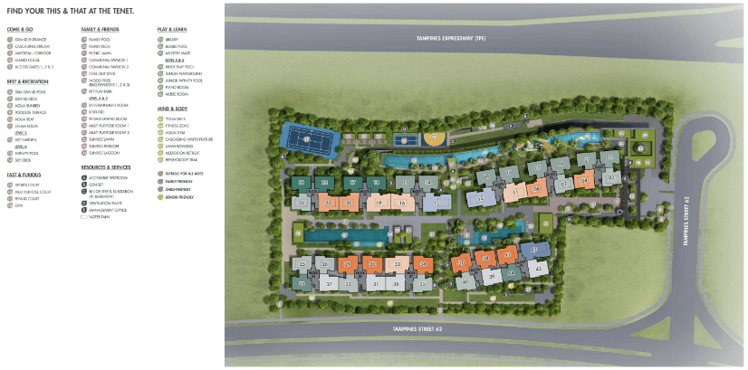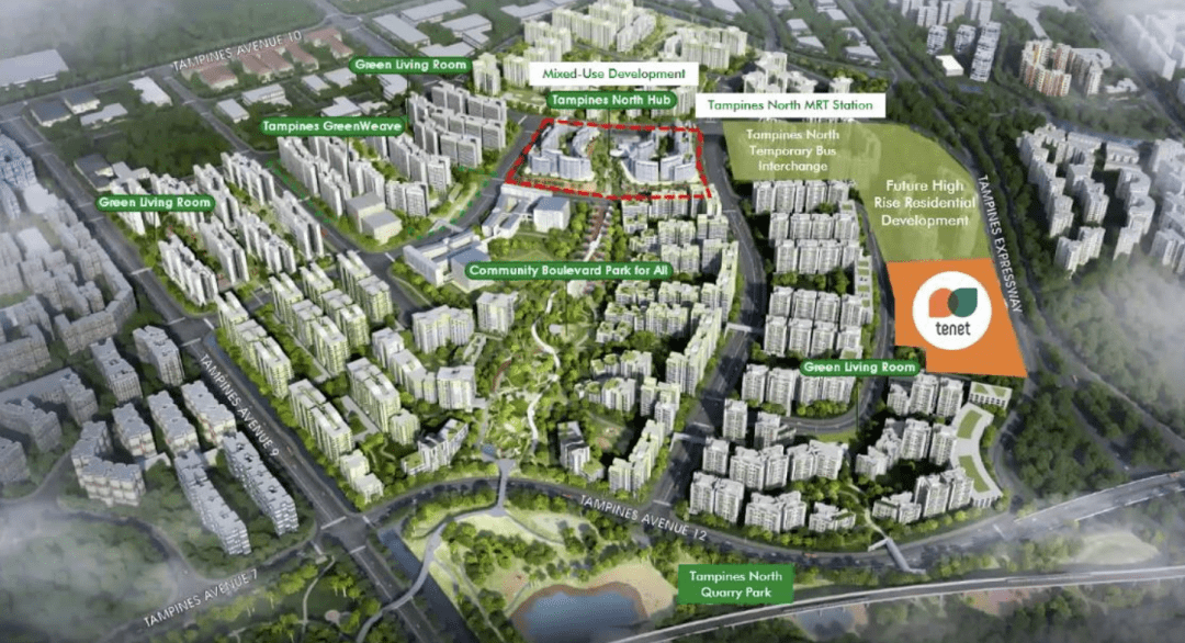 Tenet地处淡滨尼北,是未来政府重点开发地区之一,更多的交通和便民设施都会随之丰富起来。Tenet的园区周边坐落着多个城市公园,绿植覆盖极高,包括Tampines Eco Green,Pasir Ris Town Park等,住户们窗外的景色可谓养眼又怡人。