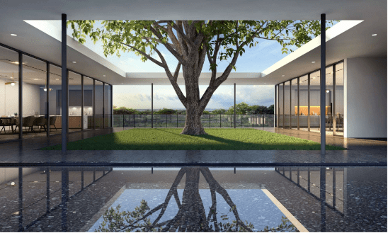 园区内配套设施方面,Tenet的园区会所十分有特色。其中不仅有超长的无边泳池和空中花园,还有一个建在无边泳池之上的Sky Deck天空观景房,供大家聊天、休息。作为园区中的地标之一,整个房间四周是落地玻璃,阳光和景色堪称一绝。