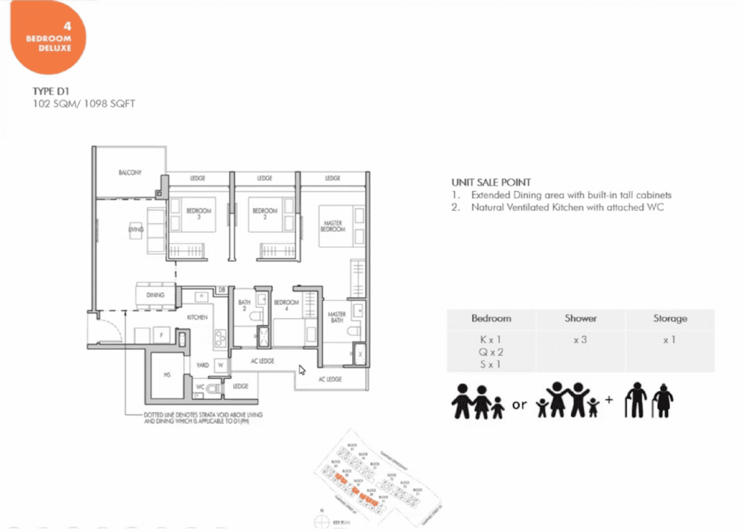 4卧豪华(一) |实用面积102平方米(1098平方英尺),指导价待定。