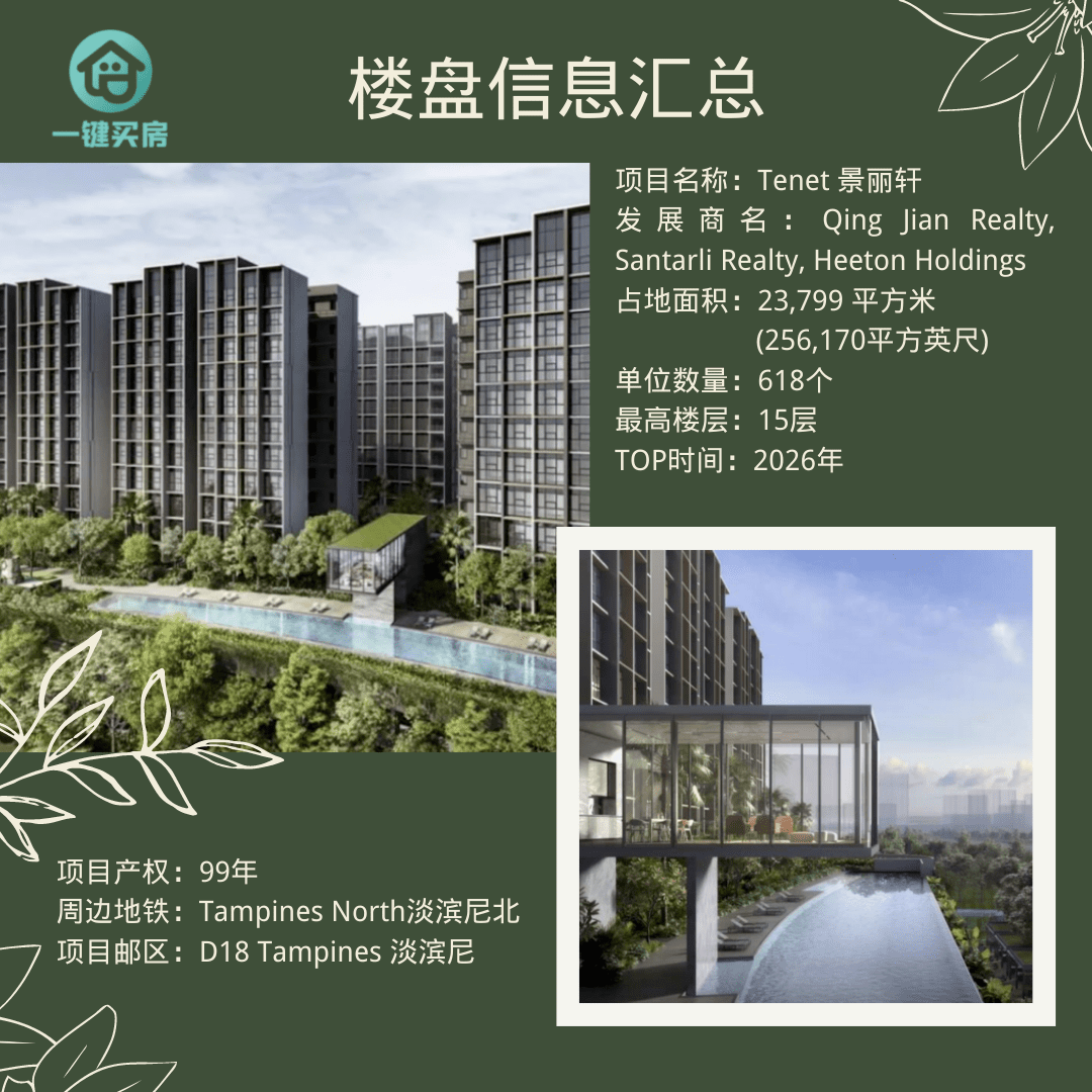 本房盘的开发商青建地产是一家经验丰富的国际知名房地产公司,其创新理念广受认可,楼盘品质保守好评,连续多年获评“新加坡十大开发商”,其中开发的项目包括Forett @ Bukit Timah, Jadescape, Le Quest等顶尖公寓项目,是新加坡顶尖的房产公司之一。这次的Tenet无论从选址还是园区到室内的设计都诚意满满。