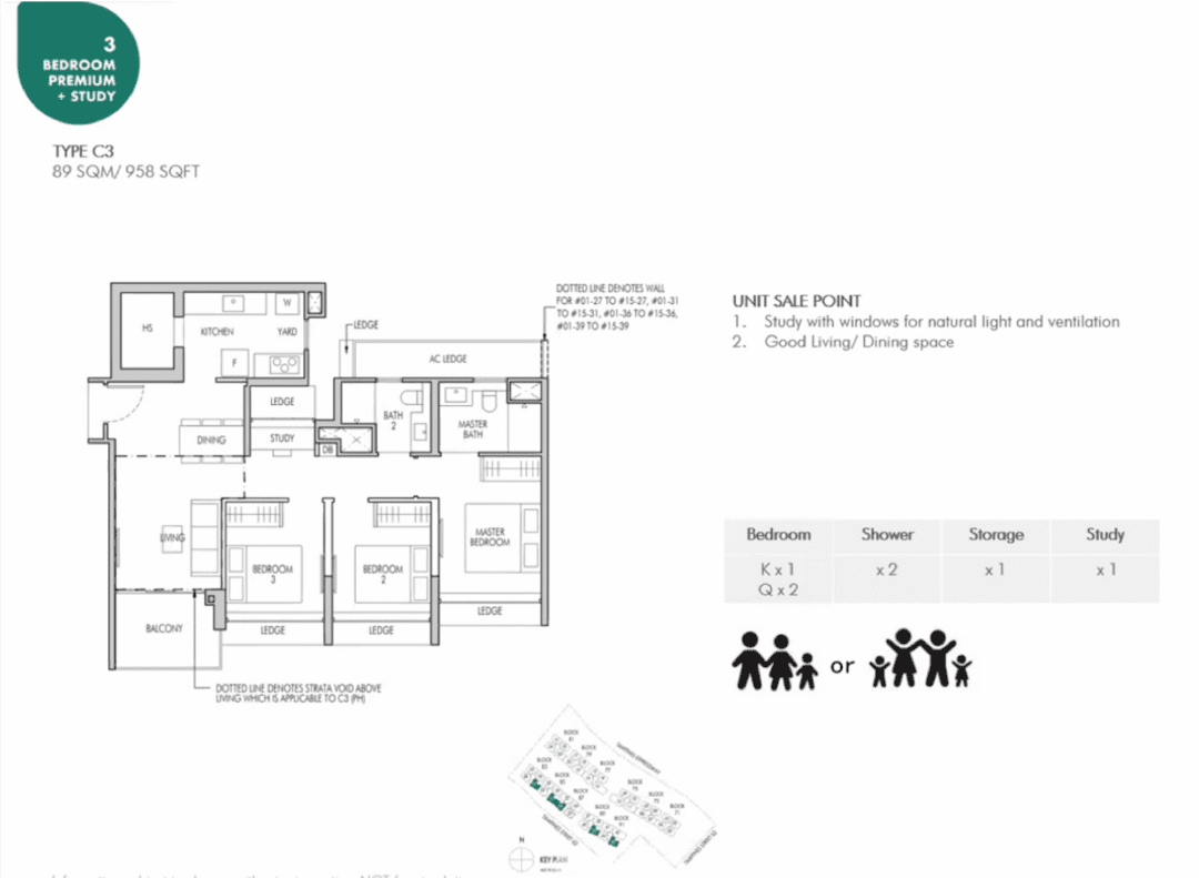 3卧+书房(一)|实用面积89平方米(958平方英尺),指导价待定。