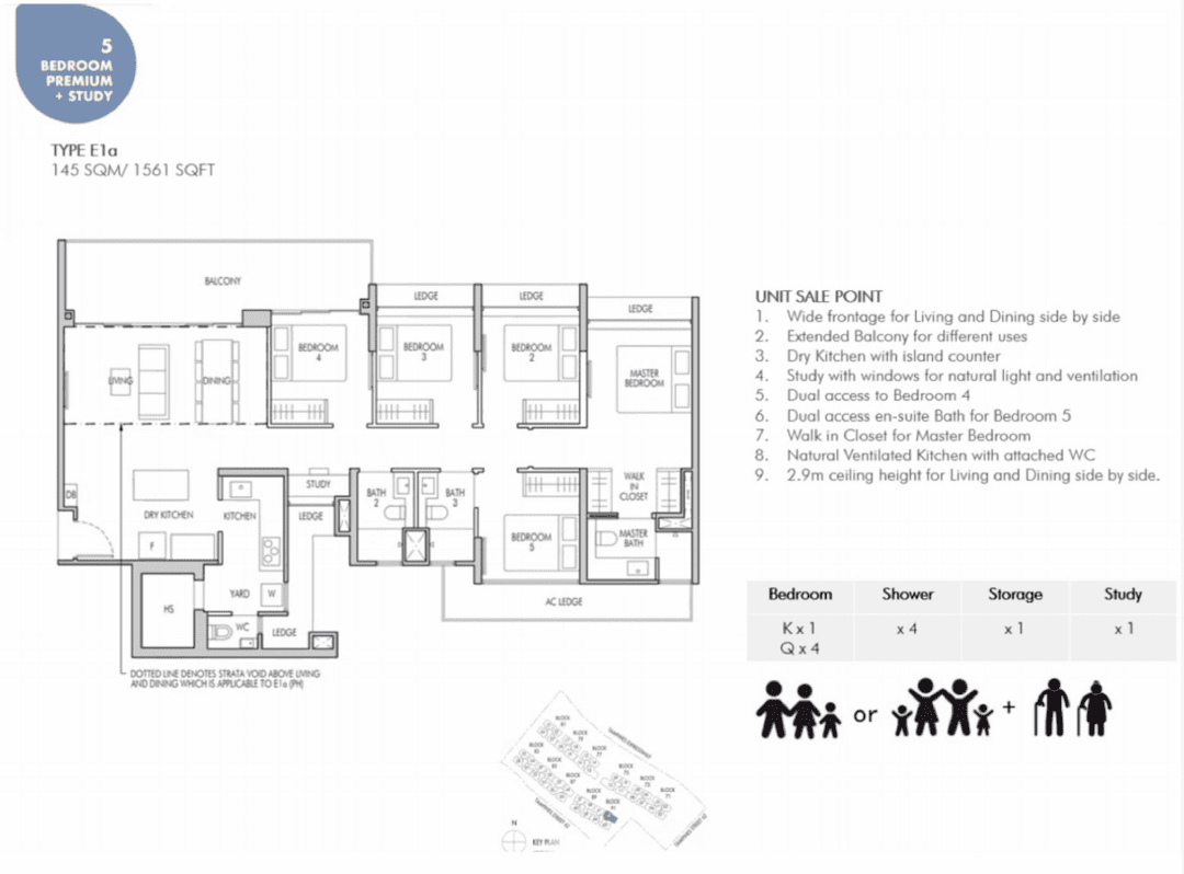 5卧+书房 |实用面积145平方米(1561平方英尺),指导价待定。