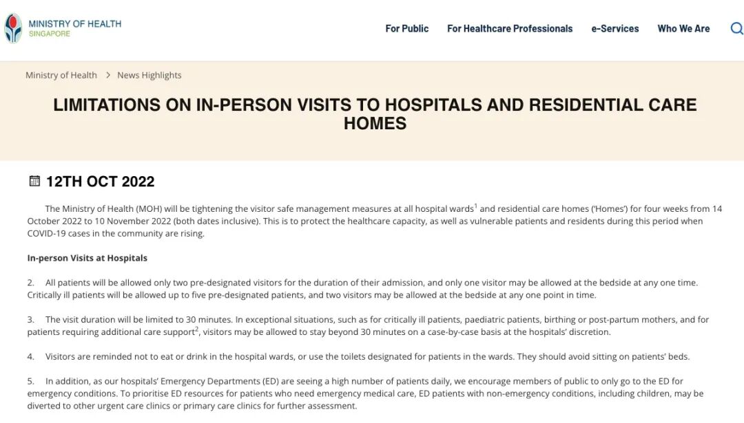 仅仅是今年,新加坡3次收紧医院、疗养院探访限制: