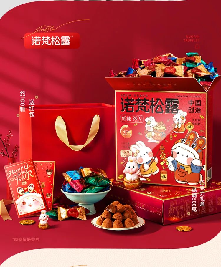 优势:新年就是要红红火火!诺梵这款春节礼盒装寓意:好事发生,真材实料,精心制作,含有四款巧克力!都是低糖噢,不用怕热量高发胖~