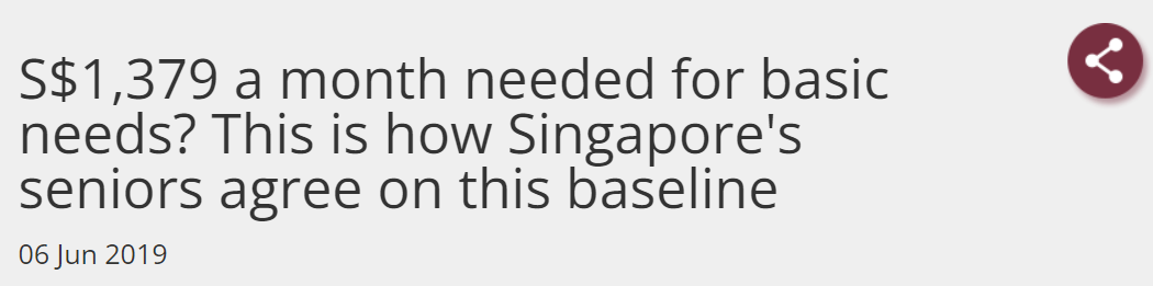 结果发现,在当时的新加坡,一名65岁的老人,每个月都至少需要1379新币才能生活下去!