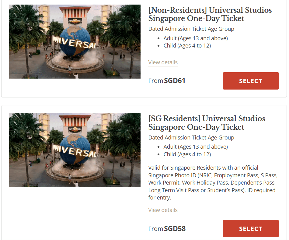 去环球影城玩上一天,单体门票也不过58/61新币(居民/非居民)而已。