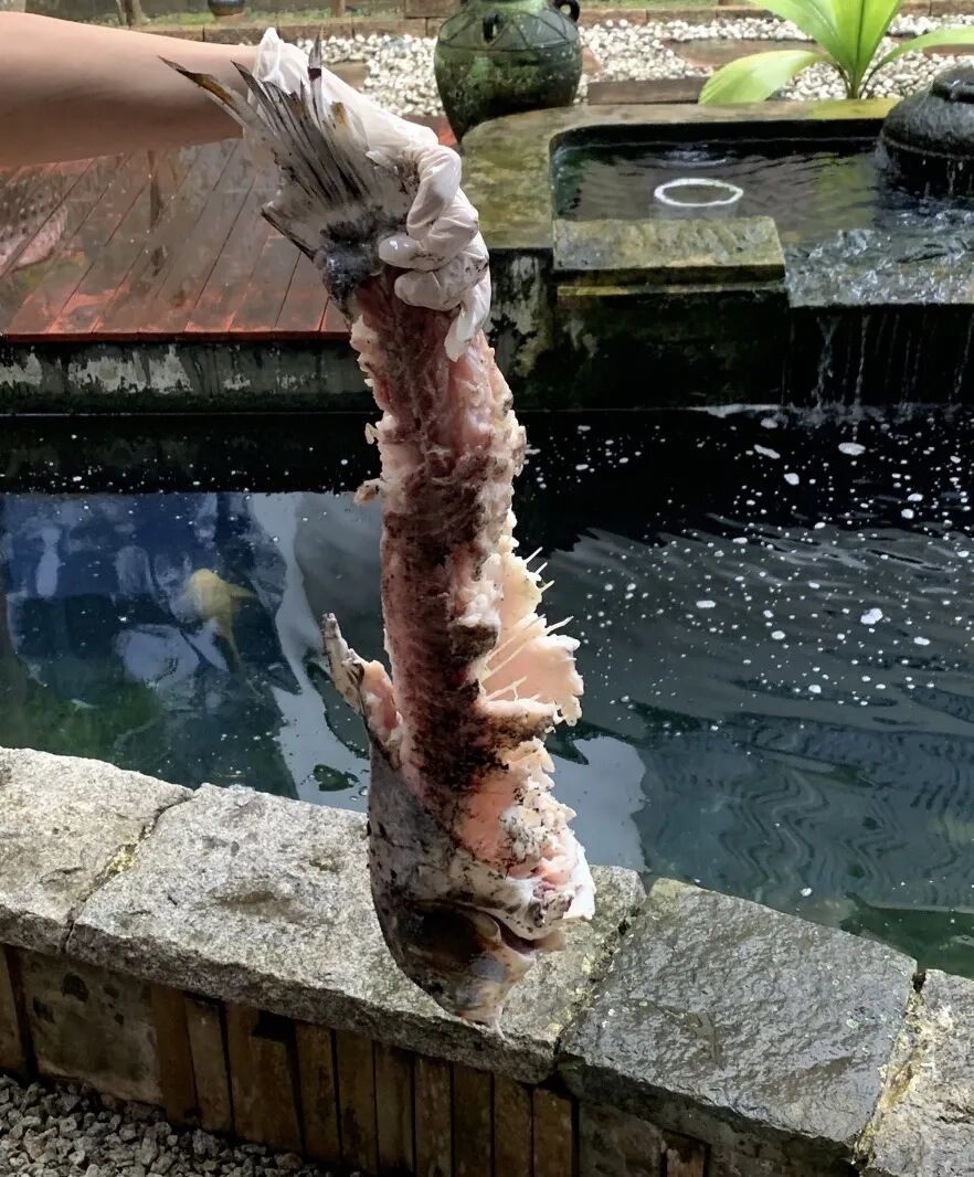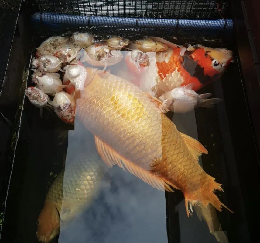 比如这一家的8条锦鲤,50条金鱼,统统没个好下场。↓