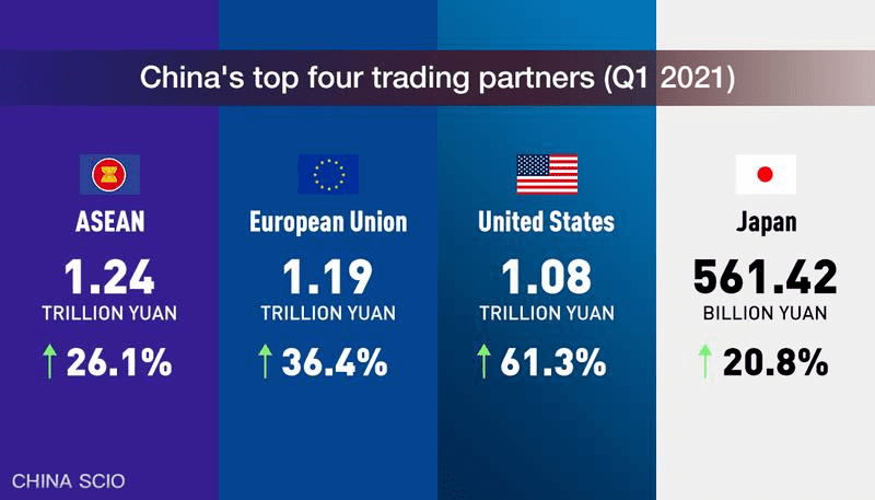 2021年第一季度东盟是中国最大的贸易伙伴,图源:China SCIO