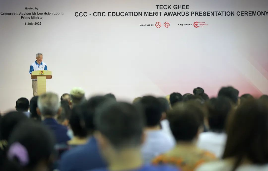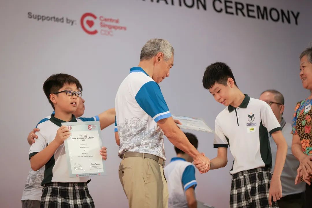 这是新加坡2023年Teck Ghee CCC-CDC教育优秀奖的获奖者颁奖现场,场地在德义小学(Teck Ghee)。