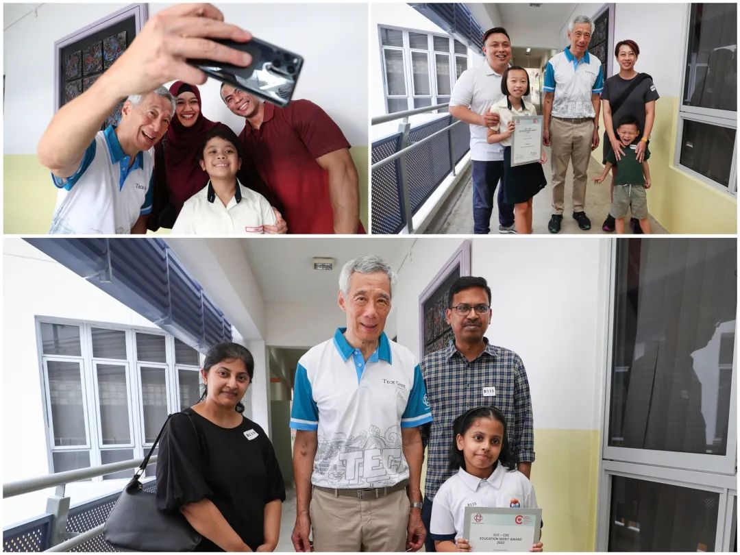 不仅是颁奖台上,李显龙总理在学校内也很热情跟大家合影。