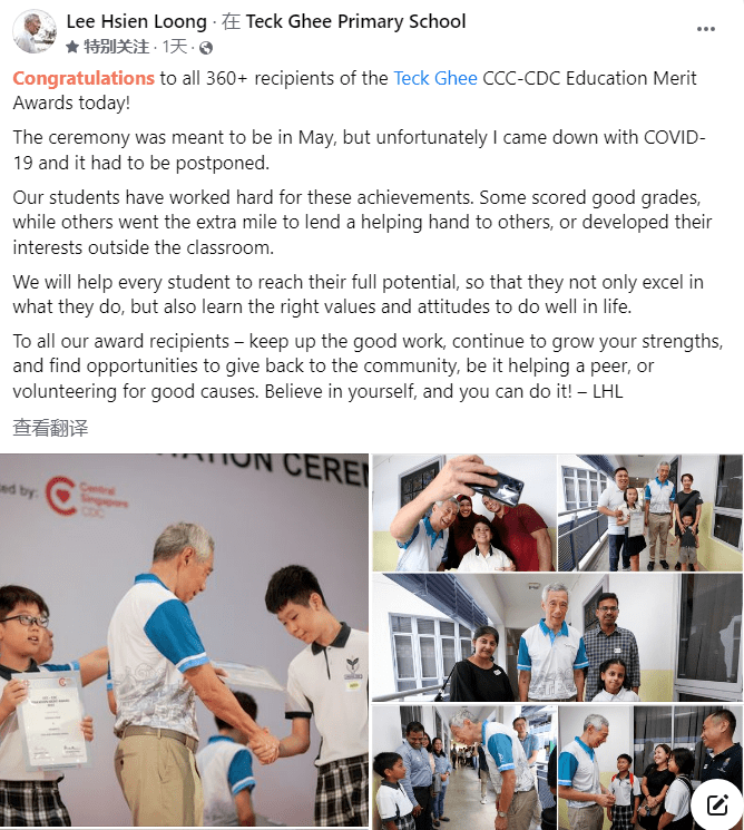 颁奖结束的第二天,李显龙总理还特地将这些照片上传至自己的社交账号。