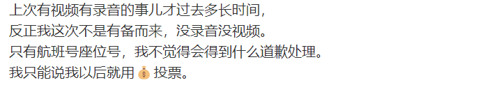 他也指出自己没录音也没视频,手里只有乘坐的航班座位号,可能并不会得到什么道歉处理。