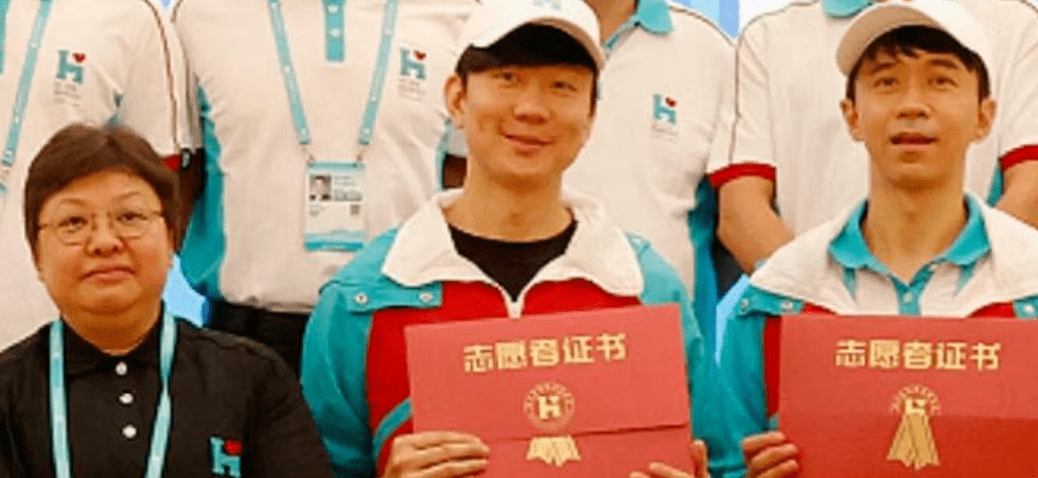 而是他被人悄咪咪地发现,他出现在一场中国的公益活动上,并当起了义工志愿者!