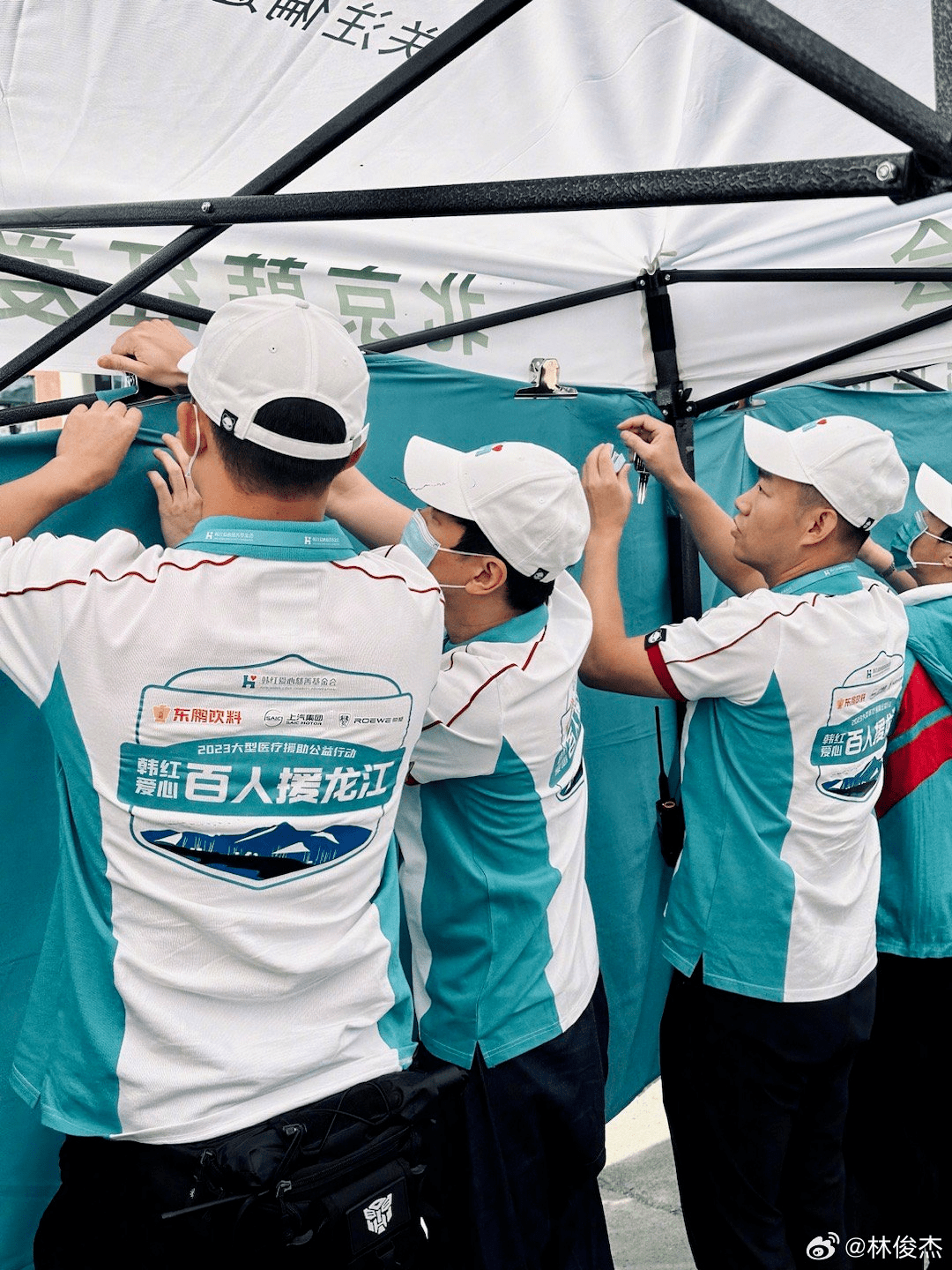 并不只是在活动上露个脸,林俊杰还亲自和其他志愿者一起身体力行地提供着支持,搭建活动帐篷。