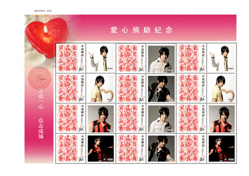 因地震后的爱心善举,中国邮政总公司特还地将其肖像载入了“演艺界爱心捐助纪念典藏邮票册”,发行其个人邮票纪念册。