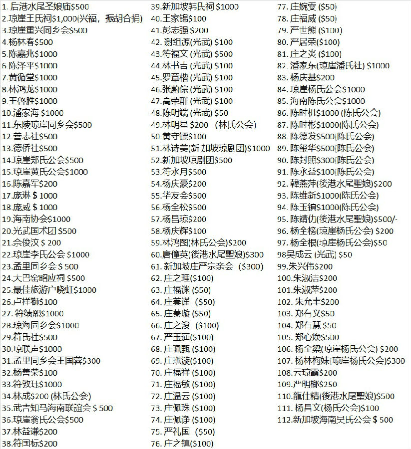 新加坡海南会在官网上筹资捐赠支持海南省防控工作,不少人纷纷捐款以表支持。