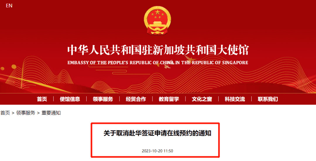 中国驻新加坡大使馆最新消息:“自2023年10月23日起,取消赴华签证申请在线预约”!有签证需求的友友们,可前往新加坡中国签证申请服务中心办理。