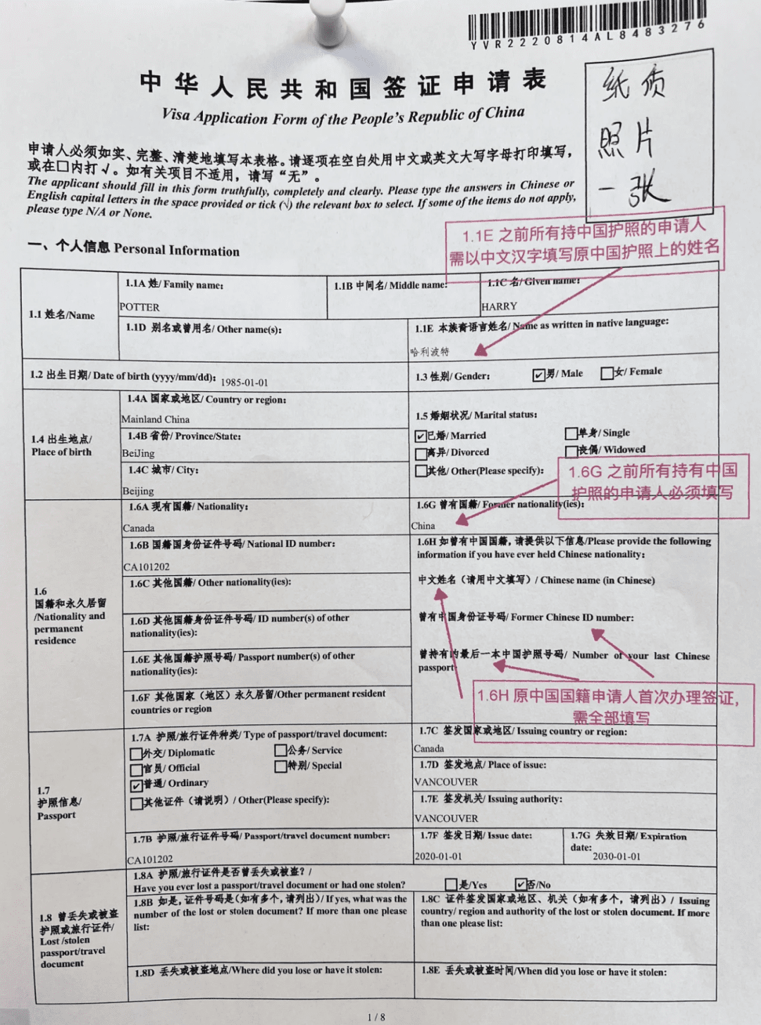 *如果新护照所记载的姓名与原护照不一致,还须提供有关官方出具的更改姓名的证明文件
