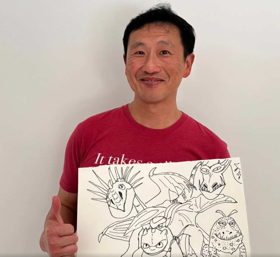 在这个农历新年,他却拿起了纸笔画起了漫画,画里面的龙还真的似模似样。