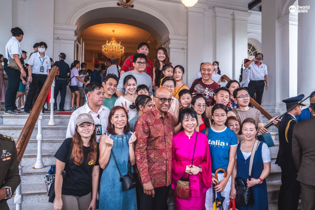 大年初三这天是总统府开放日,尚达曼带着夫人出现在了总统府欢迎民众参观游玩。