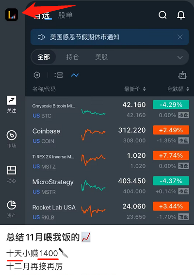 一位才开户不久的小伙伴分享,才10天,就小赚1400刀Dollar