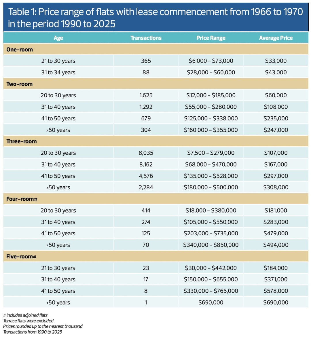 以一些建设在1966年至1970年之间的房子为例,我们可以看到,屋龄为21-30年的房子依旧有着不俗的需求,但31-40年屋龄的房子转售交易数量就明显少了很多。