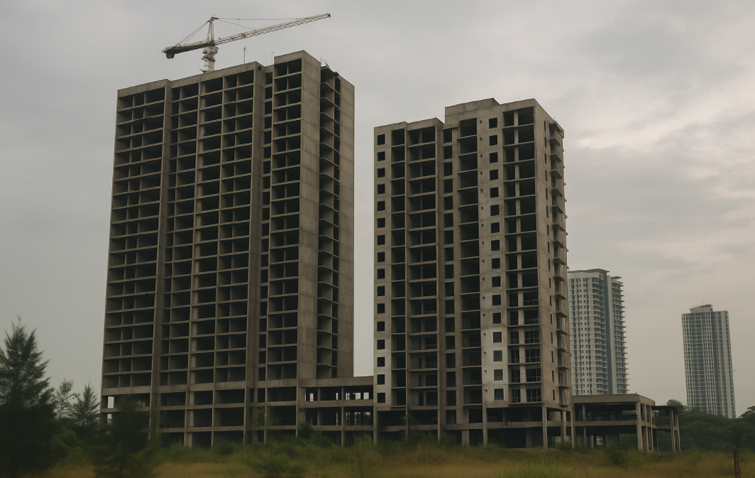 马来西亚对开发商的监管机制比新加坡宽松,有些项目资金链一断,工地就直接停摆。