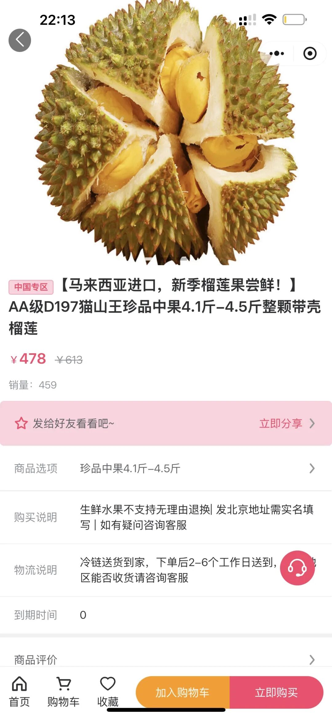 更多规格马来西亚D197猫山王榴莲点击下图跳转选购
