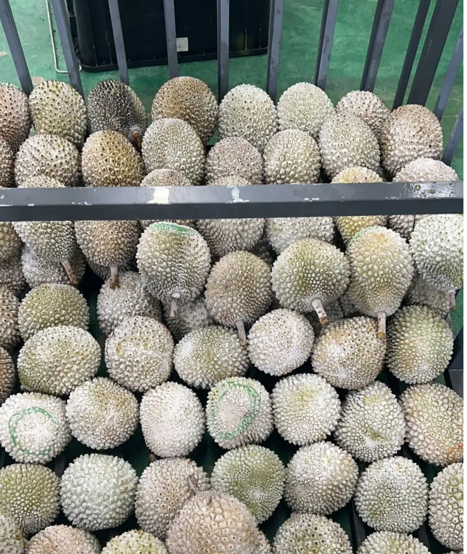 接着,这颗榴莲走冰鲜冷链专线,送到各位手里是还带冰渣呢!