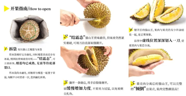 猫山王开果方式也很简单,只需撬开底部的五角星,然后一掰就好,小学生也能轻松开~