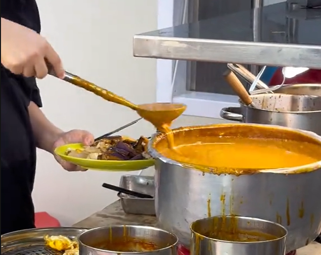 新摊的菜单设计简洁,以经典套餐为主,比如Pork chops, pork tripe, and curry chicken,搭配Red braised cabbage和Soft-centered fried egg,再加上一勺香浓的椰奶咖喱,售价仅为4.80新元。