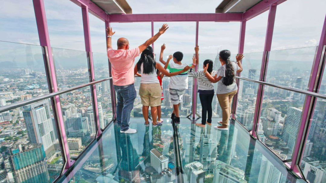 Sky Deck at Kuala Lumpur Tower虽为游客热点,但吉隆坡 300 米高空的空中甲板仍是赏城市景观的佳处,若不惧高度,可排队体验从甲板壁架延伸出的玻璃吊舱 “天空包厢”。