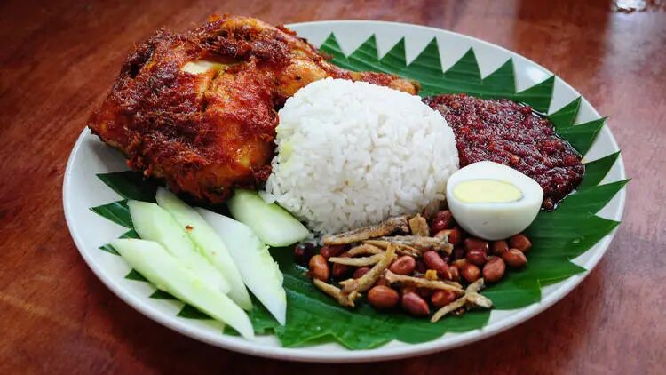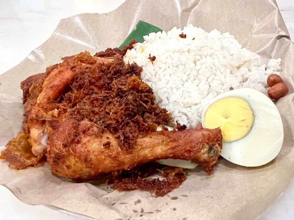 Village Park Restaurant其椰浆饭有酥脆多汁的鸡腿, Sambal也出色,必尝 fried chicken leg, nasi lemak 4 新元起。