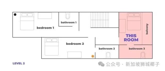 四房式组屋仅3人共享,两间卫生间,空间宽敞,隐私性好。