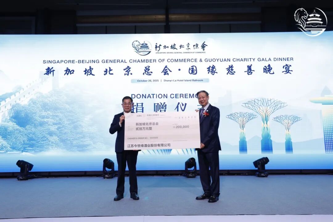 成立庆典同期举行了“新加坡北京总会-国缘慈善晚宴”,江苏今世缘酒业股份有限公司董事长顾祥悦致辞。