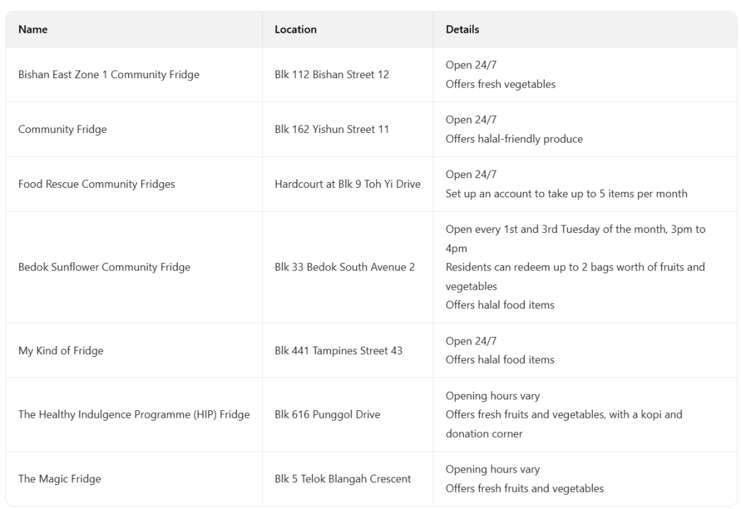 新加坡有不少Community fridges,秉持 “拿需予余” 理念,由社区 / 倡议设立,存 Fridge Restock SG 等捐赠救援食物,多先到先得向居民开放,具体资格需咨询管理方。