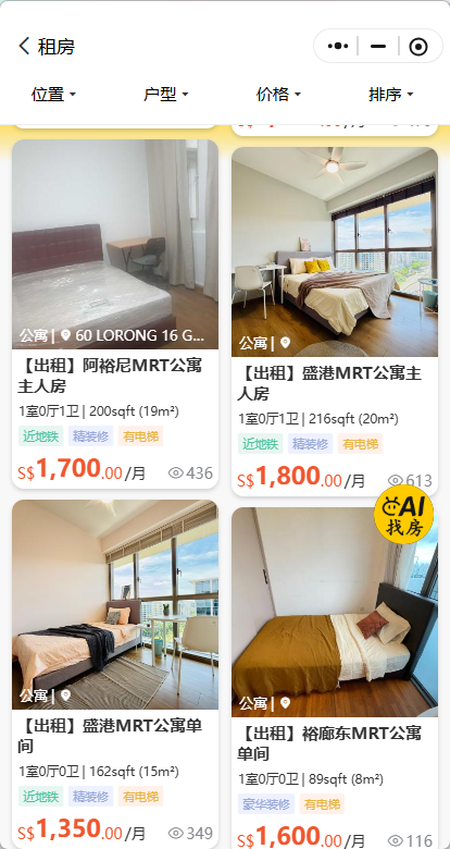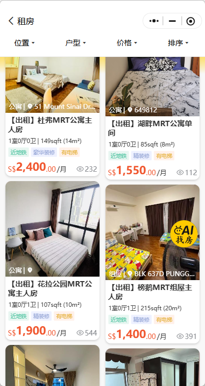 · 租金:全包最低 1500 新币/月,含水、电、网,全程省心省力。