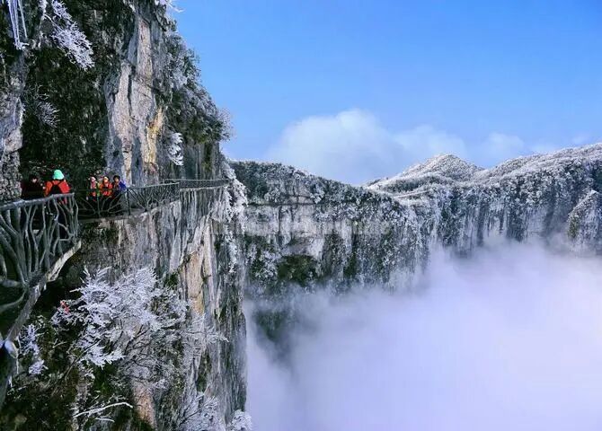 《阿凡达》哈利路亚山脉灵感来源张家界,冬季雪覆砂岩地貌如童话。